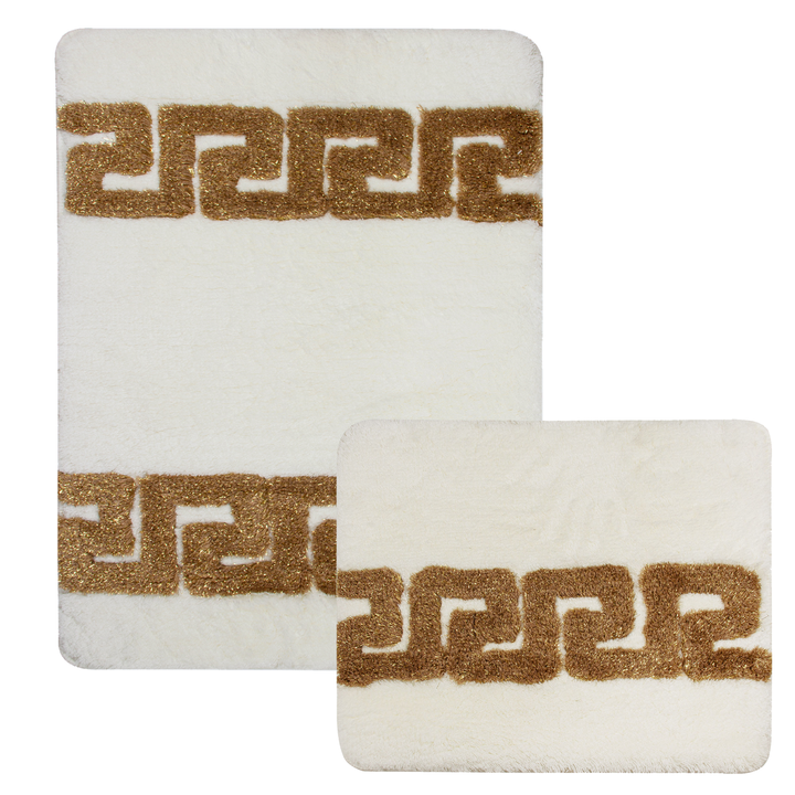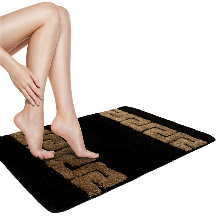 Luxury bath mat shower rug with meander motif in black or white gold 100% acrylic