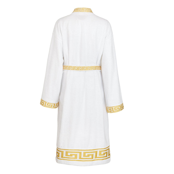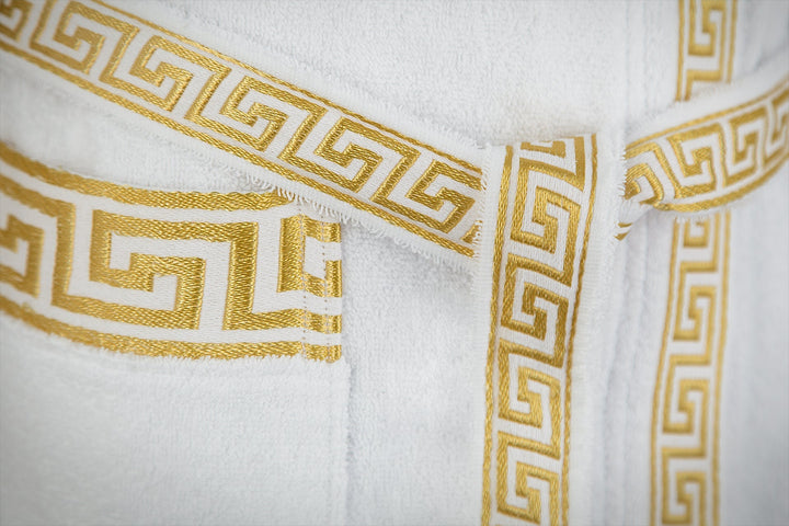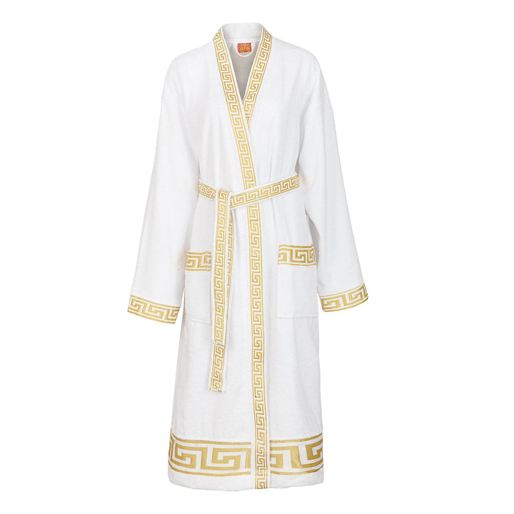 Luxury bathrobe kimono meander in white gold for women & men - 100% cotton