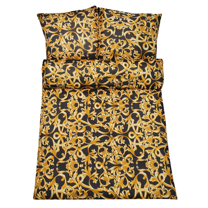 Exclusive bed linen Baroque Deluxe 3-piece set in black gold - 100% cotton renforcé - Breathable - Made in Italy