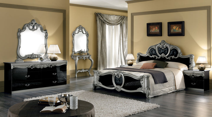 Bedroom set complete, Double bed - 160x200 cm, Wardrobe 4 doors, Mirror for dresser, Bedside table with 2 drawers, Pouf, Slatted frame 160x200 cm |