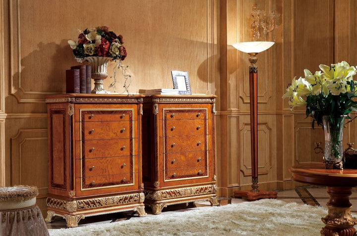 The Michelangelo walnut series was designed exclusively for us by the best furniture designers in Italy. Production takes place exclusively for our company and we distribute it exclusively worldwide. All furniture parts in this series are made of solid wood and are made entirely by hand. This is high-quality furniture in a classic style.