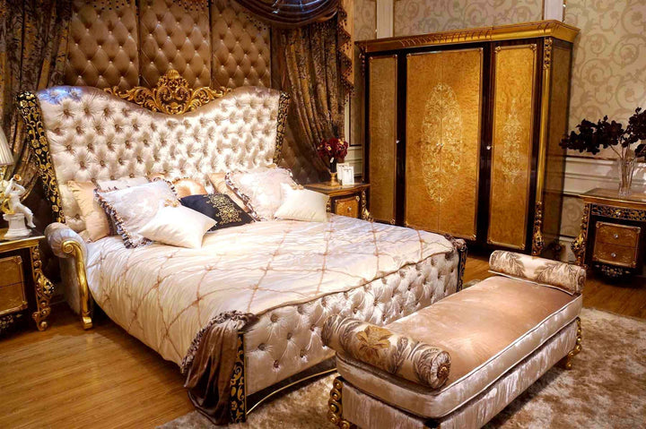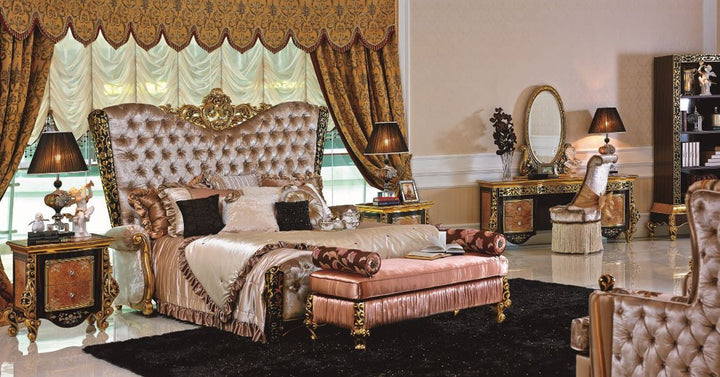 Double bed 1(180), Double bed 2 (200), Bedside table, Wardrobe (4 doors), Wardrobe (6 doors), Dressing table, Mirror for dressing table, Chair for dressing table (upholstered), Tall chest of drawers (5 drawers), Bench, Recamiere, Shoe cabinet, Set offer bedroom |