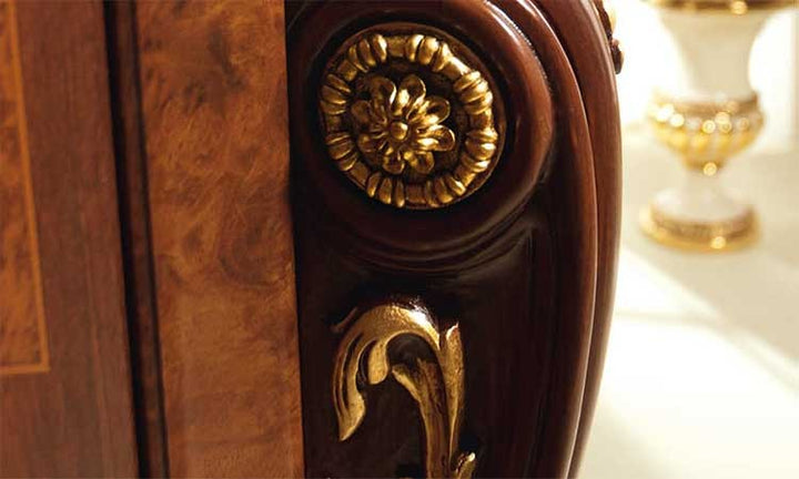 The friezes and crowns refined with gold leaf define and decorate all the furniture pieces in the collection. Every detail of the elements is made with the utmost care and precision.