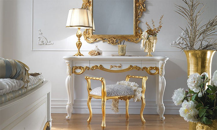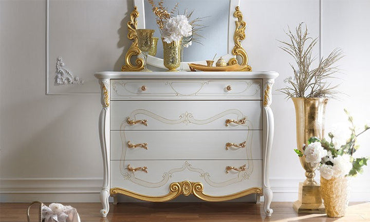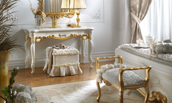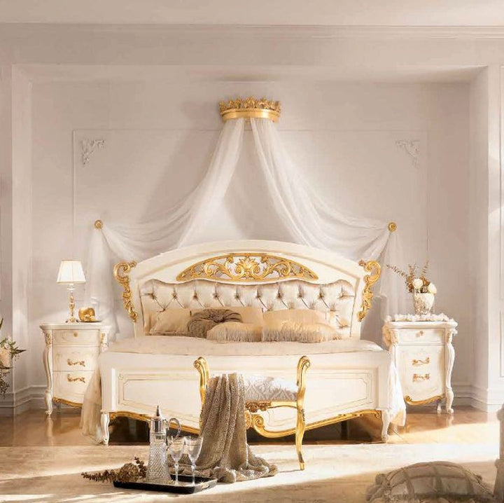 Best workmanship in a classic style in the dreamy colors cream white and gold, refined with hand-applied gold leaf.