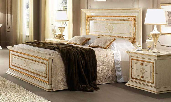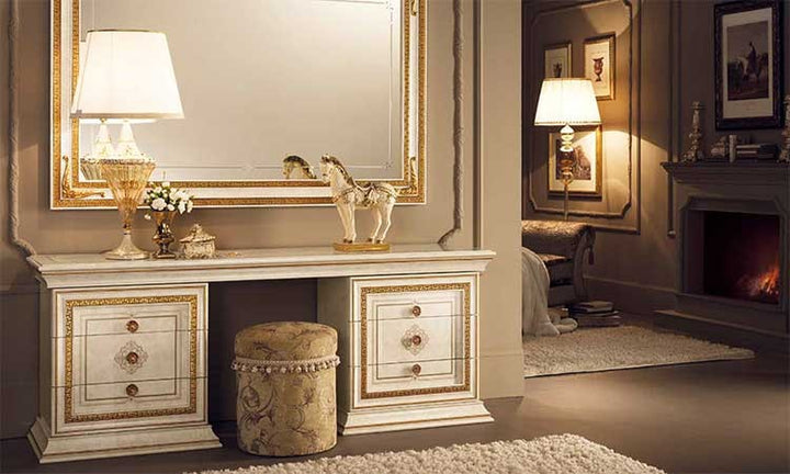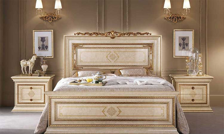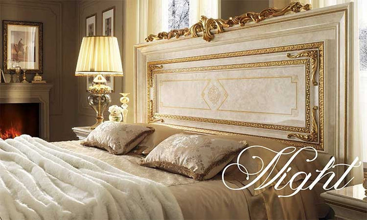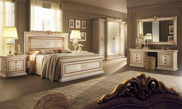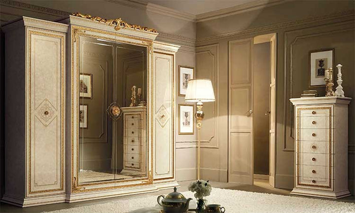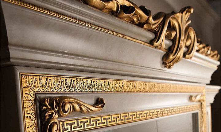 The headboard of the bed, the mirror and the wardrobe can be decorated with a gold leaf crown to add a touch of luxury and royal elegance.