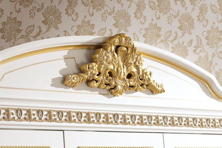 The Michelangelo Cream White series was designed exclusively for us by the best furniture designers in Italy. Production takes place exclusively for our company and we distribute it exclusively worldwide. All furniture parts in this series are made of solid wood and are made entirely by hand. This is high-quality furniture in a classic style.