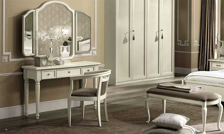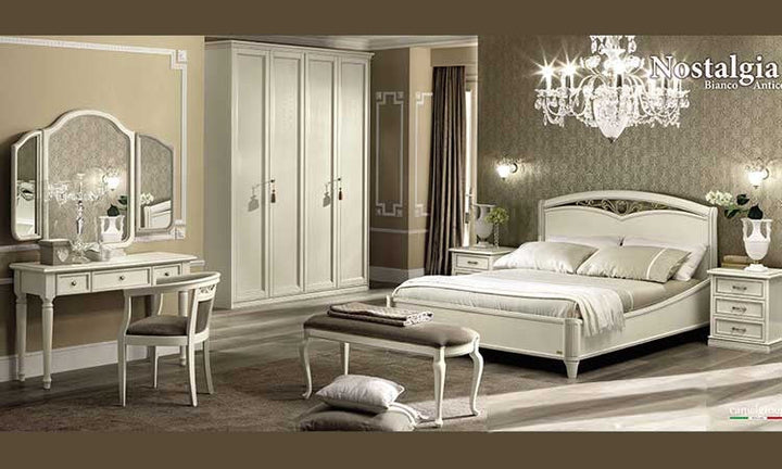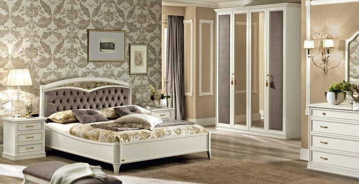 Bedroom set complete, Double bed 1 - 160x200 cm, Double bed 1 - 180x200 cm, Double bed 2 - 160x200 cm, Double bed 2 - 180x200 cm, Wardrobe 2 doors H 220 cm, Wardrobe 3 doors H 220 cm, Wardrobe 4 doors H 220 cm, Wardrobe 5 doors H 220 cm, Wardrobe 6 doors H 220 cm, Tall chest of drawers with 7 drawers, Chest of drawers with 4 drawers, Chest of drawers with 4 drawers maxi, Dressing table, Bedside table with 3 drawers, Chair 1, Chair 2, Chair 3, Armchair upholstered with armrest, Pouf, Stool, Bench, Wardrobe 2 ttg H 250 cm, Wardrobe 3 doors H 250 cm, Wardrobe 4 doors H 250 cm, Wardrobe 5 doors H 250 cm, Wardrobe 6 doors H 250 cm, Bed box, Bedside table 2 drawers, Side table |