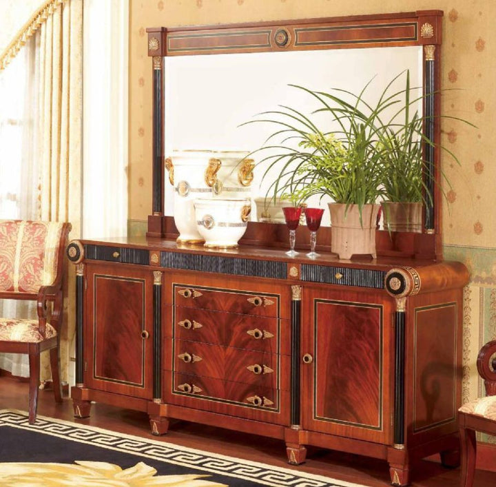 The "Piedmont Walnut" series was designed exclusively for us by the best furniture designers in Italy. Production takes place exclusively for our company and we sell it exclusively worldwide. All furniture parts in this series are made of solid wood and are made entirely by hand. This is high-quality furniture in a classic style. This furniture is an eye-catcher for every room. The furniture is characterized by lightness and timeless elegance. This classic furniture radiates elegance and fascination. Benefit from the permanent exhibition offers at particularly low prices. Contact us and let us make you a non-binding offer. Exclusive living at affordable prices through in-house production.