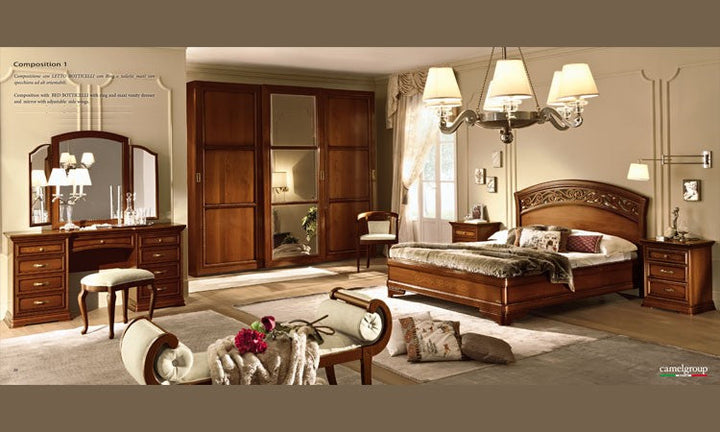 Bedroom Complete, Bed 1 LF 160 x200, Bed 1 LF 180 x200, Bed 2 LF 160x200, Bed 2 LF 180x200, Bed 3 LF 160 x200, Bed 3 LF 180x200, Bed box 160x200 cm, Bed box 180x200 cm, Kit rods, Bedside table straight, Bedside table rounded, Chest of drawers straight, Chest of drawers rounded, Tall chest of drawers straight, Rounded tall chest of drawers, Mirror, Dressing table, Wardrobe 2 doors, Wardrobe 3 doors, Wardrobe 4 doors, Wardrobe 5 doors, Wardrobe 6 doors, Wardrobe sliding door, Mirror for door, Bench, Stool |