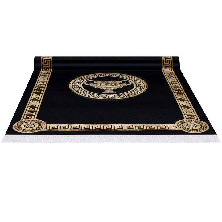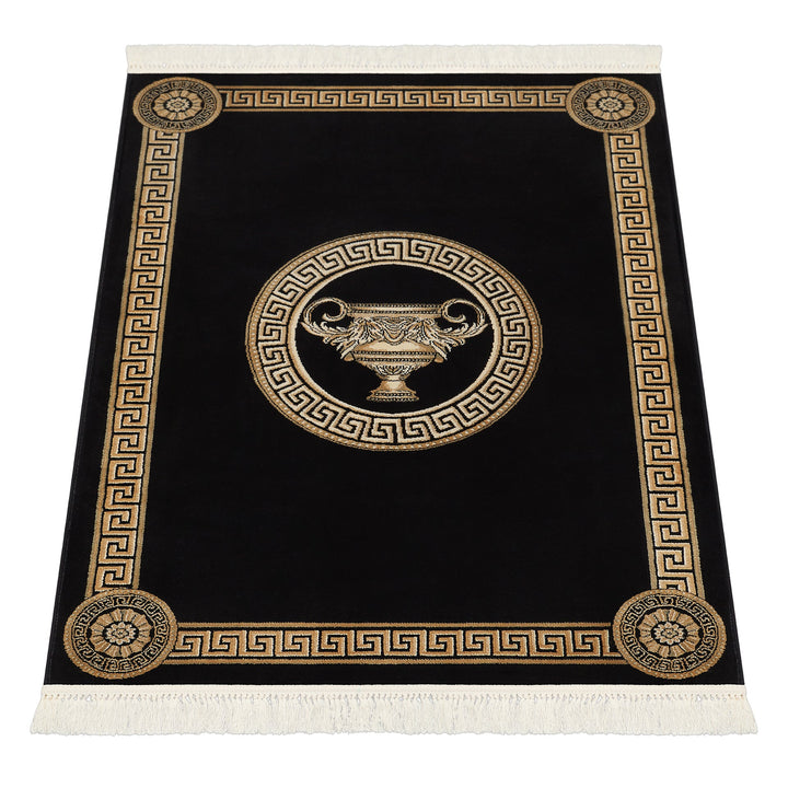 Luxury living room carpet with amphora motif in black gold - 100% viscose - short pile & silky shine
