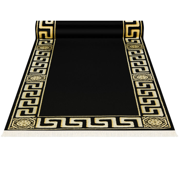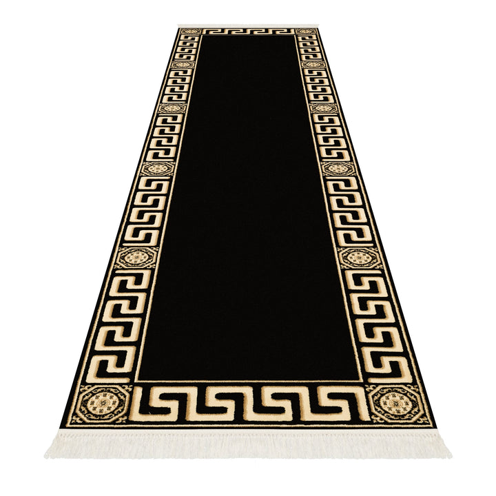 Premium designer carpet runner black gold with meander motif - 100% viscose & silk gloss