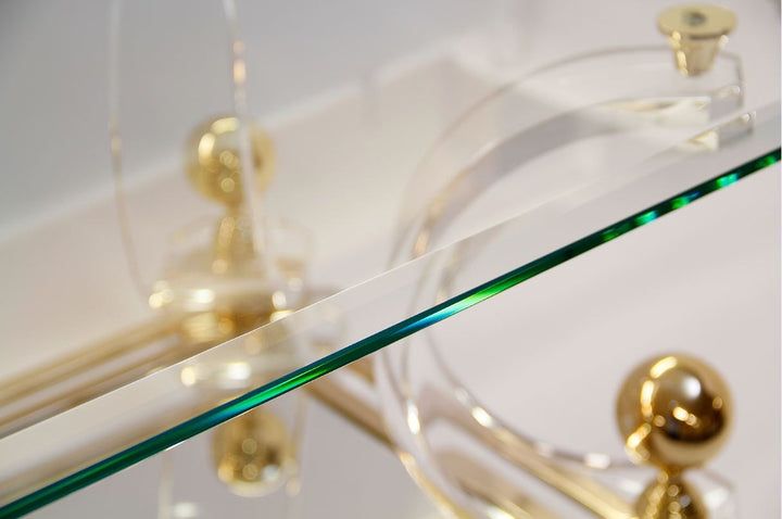 As a neutral and high-quality material, acrylic suits every interior style and is back in fashion. The unique design of the coffee table offers you several setup options. The acrylic glass ball gold coffee table has an excellent price-performance ratio - and is also 100% high quality! High-quality materials and strict quality controls during the processing of the acrylic glass design ball gold coffee table guarantee a long service life. A beautiful design and perfect workmanship ensure long-lasting joy and a piece of exclusivity in your home.