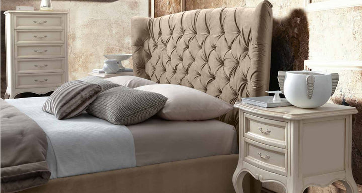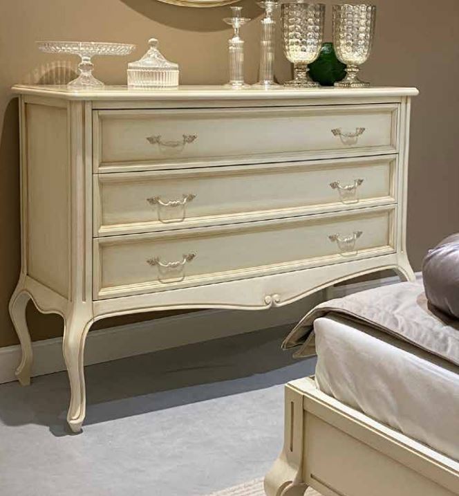 Make your dream of Italian elegance come true. Italian production ensures quality and durability. Various items from this series are available and there are no long waiting times. Please contact our staff and let us create an individual offer for you. Benefit from our large stocks at a special price. Color: beige high gloss with gold decor, the decorations, mattresses and bed frames shown are not included in the offer.