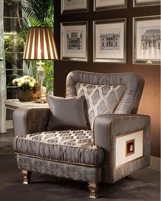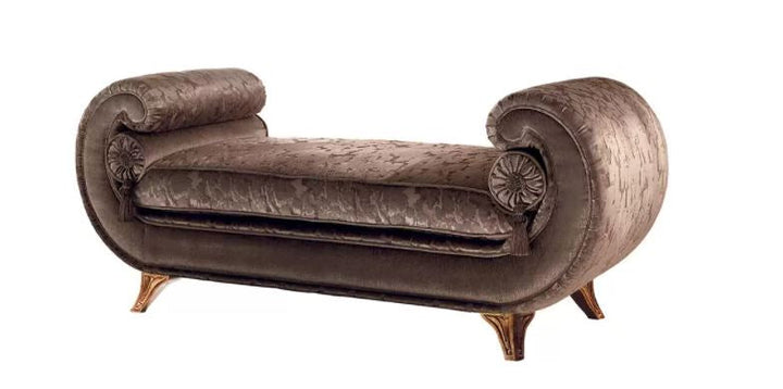 Put together the elements of the suite yourself and choose the fabric combination that suits you best. Our Italian cabinetmakers apply this order properly, with six layers of varnish being applied manually, layer by layer. The final gilding is applied by hand. The frames are made of solid wood. Only the best foams with a medium seat hardness are used for the fillings. Belt and/or spring cores enable the best seating comfort.