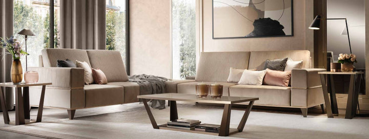 Put together the elements of the suite yourself and choose the fabric combination that suits you best. Our Italian cabinetmakers apply this order properly, with six layers of varnish being applied manually, layer by layer. The final gilding is applied by hand. The frames are made of solid wood. Only the best foams with a medium seat hardness are used for the fillings. Belt and/or spring cores enable the best seating comfort.