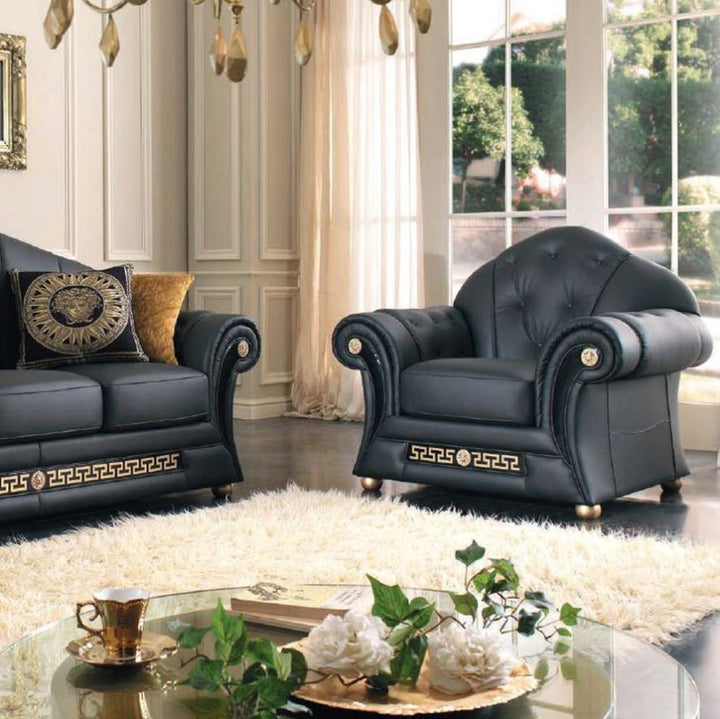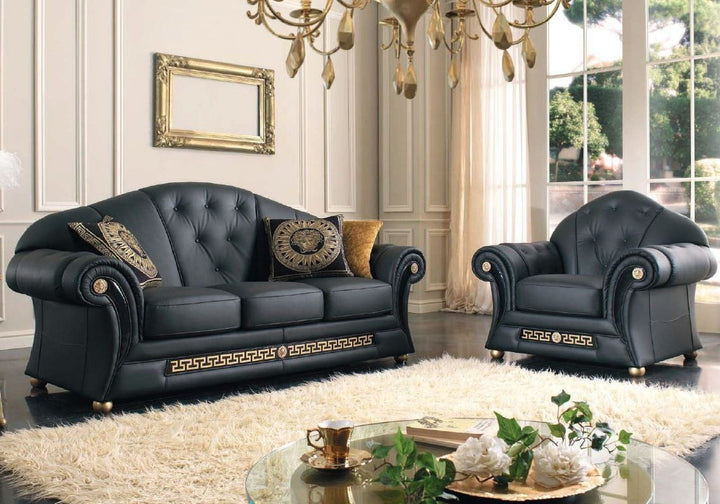 Prestige Leather Black Sofa Set