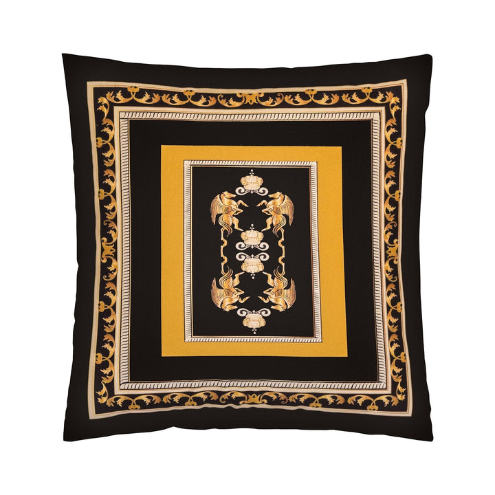 Cushion Pegasus velour look in black gold with crown - soft & comfortable