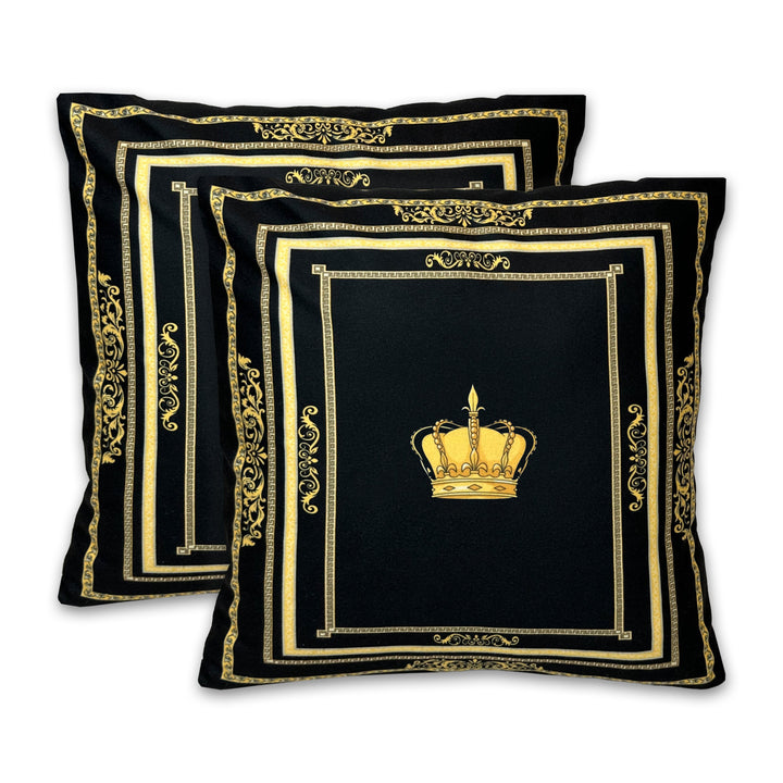 Decorative pillow with crown motif silk look in black gold with pillowcase