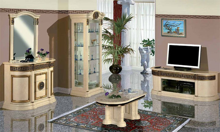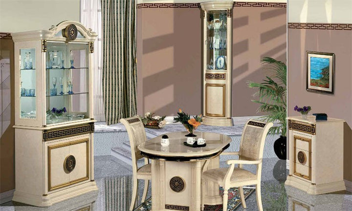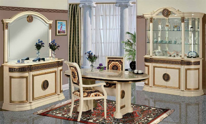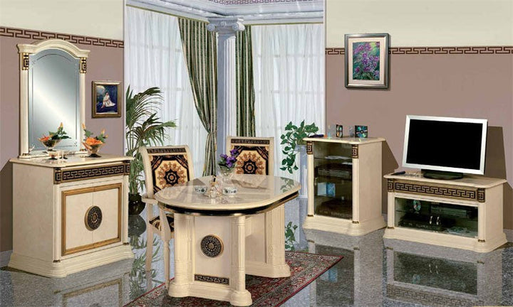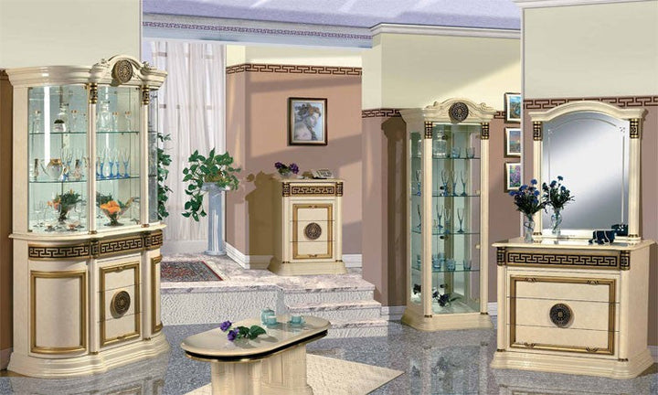 Design and simple lines and the subtle glossy effect, together with the beautiful decor, characterize the collection. All elements of this collection are produced in ivory. All decorative frames are made of polyurethane and the handles are made of gold-colored metal. Enjoy a large selection of items to match your living space. Since the furniture is very popular, there are sometimes waiting times, so we have many parts available for immediate delivery and would be happy to make you an individual offer. In this model, the manufacturer has tried to combine three characteristics: Firstly, the low price, excellent quality and the perfect appearance.