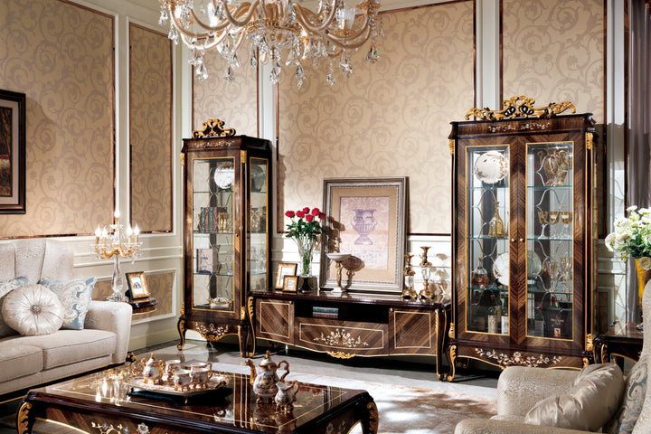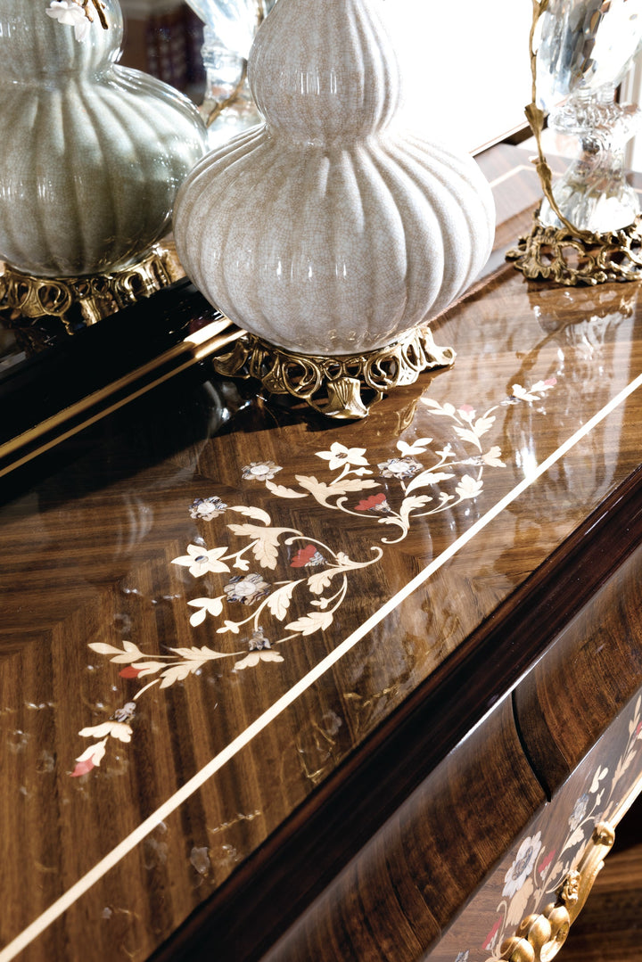 The Caserta walnut series is produced exclusively for Belle Arti. We had the best cabinet makers in Italy create the design, which is painstakingly made by hand. We have managed to offer this exclusive series at an astonishingly low price that would otherwise not be possible. The shapes are classic and adapt to all circumstances. Colors and decors were chosen discreetly. It is made exclusively of solid wood. Creating long-lasting luxury and lasting value were the main focus during development and production.