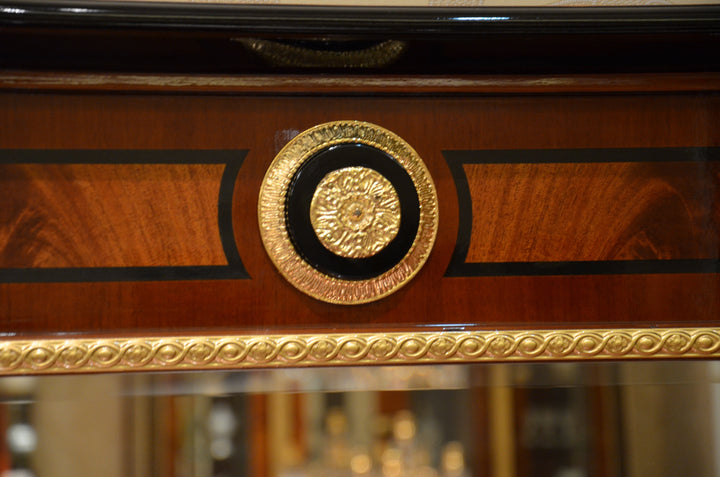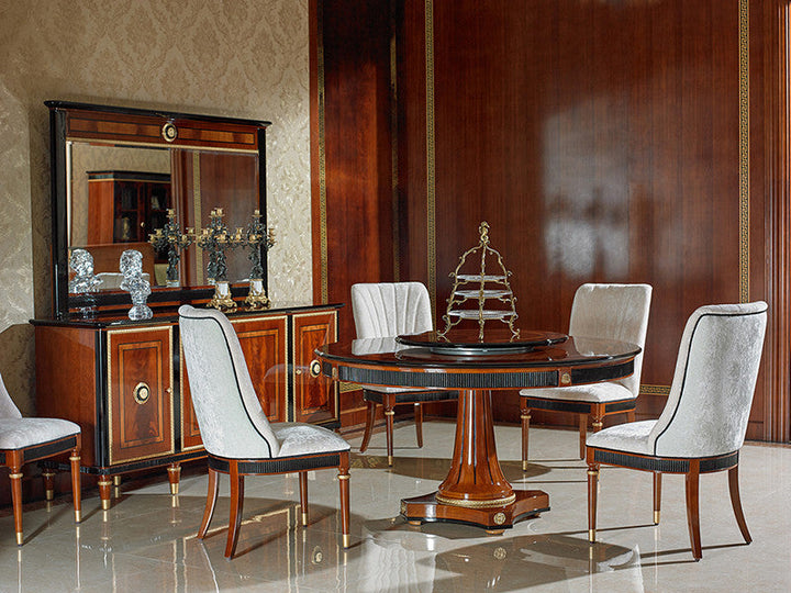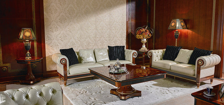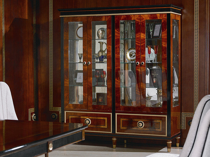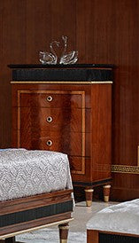 The Capri walnut series was designed exclusively for us by the best furniture designers in Italy. Production takes place exclusively for our company and we distribute it exclusively worldwide. All furniture parts in this series are made of solid wood and are made entirely by hand. This is high-quality furniture in a classic style. The walnut-colored root veneer, with matte, subtle gold and black accents, exudes pure luxury.