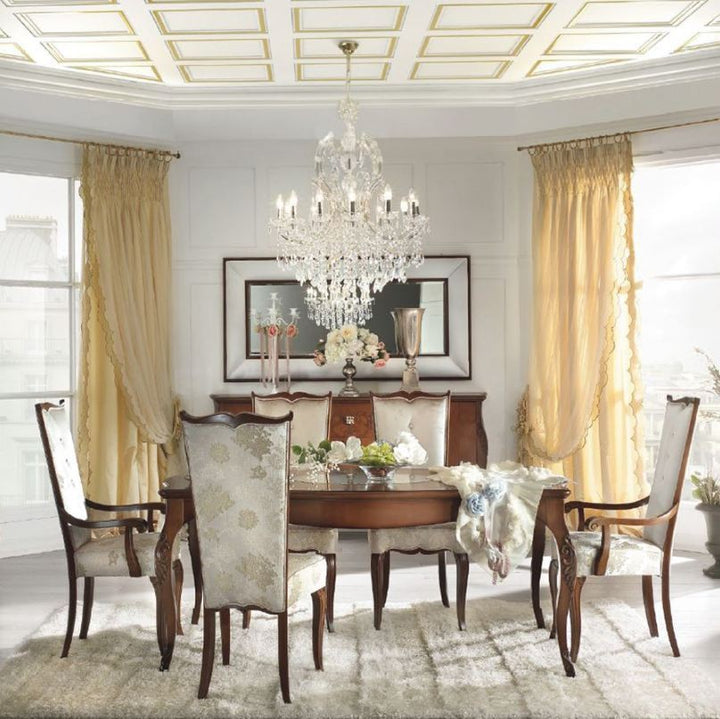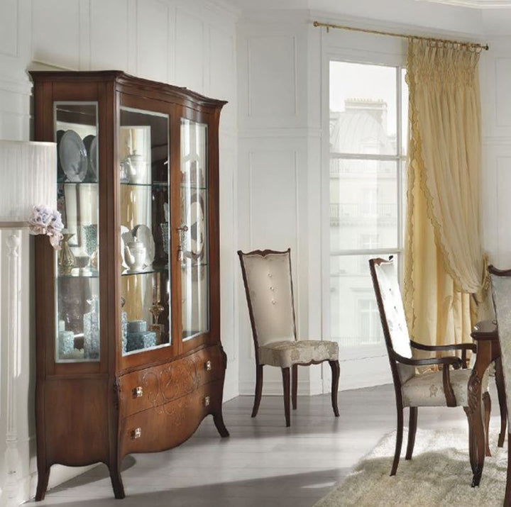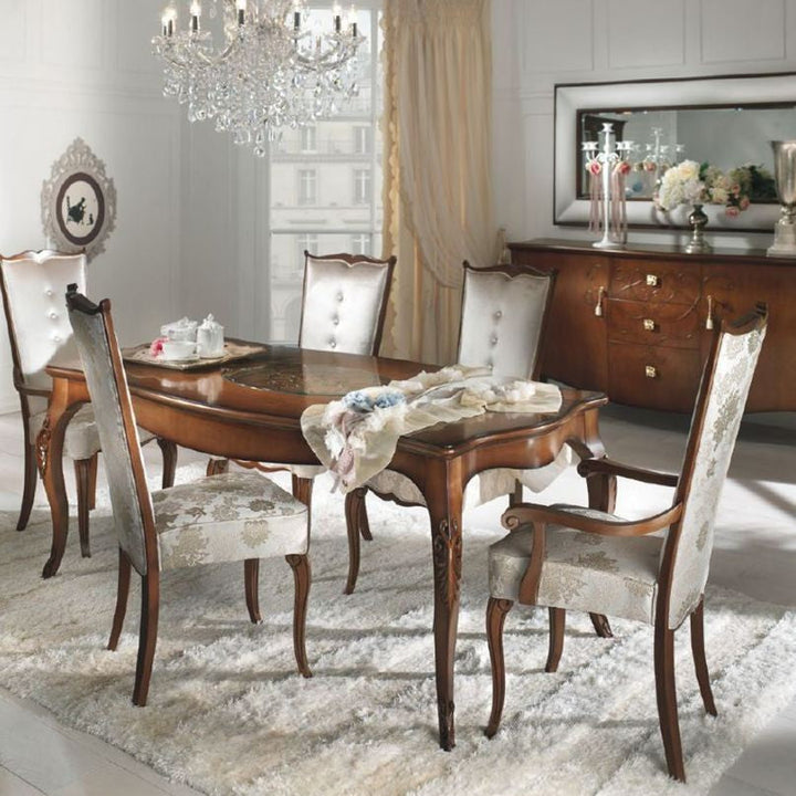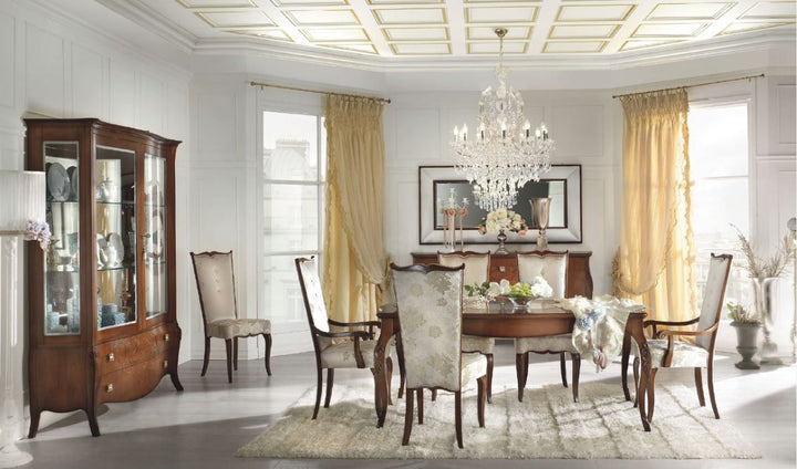 Dining table rectangular fixed, Dining room complete, Chest of drawers 2 doors with drawer, Chest of drawers 2 doors, Large mirror, Display cabinet 2 doors, Chair with armrest, Chair without armrest |
