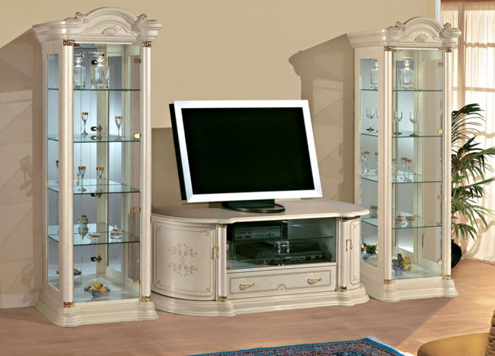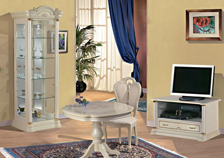 Dining room complete, Display case 1 door, Oval extendable dining table, Corner showcase, Small mirror, Chair without armrest fabric, Coffee table, Side table, Mirror for 4 door dresser, Chest of drawers with 4 drawers, TV cabinet Maxi, TV cabinet mini, Display cabinet 2 doors, Chair with armrest fabric, Chair without armrest leather, Chair with armrest leather, Display cabinet 3 doors, Display cabinet 4 doors, Chest of drawers 4 doors, Chest of drawers 2 doors with drawers, Chest of drawers 2 doors, Dining table oval small, Dining table oval, Tea table, Stereo cabinet, Streo cabinet with drawers, Tea chair, Tea couch |