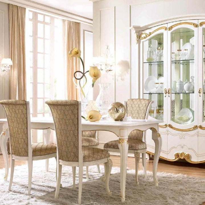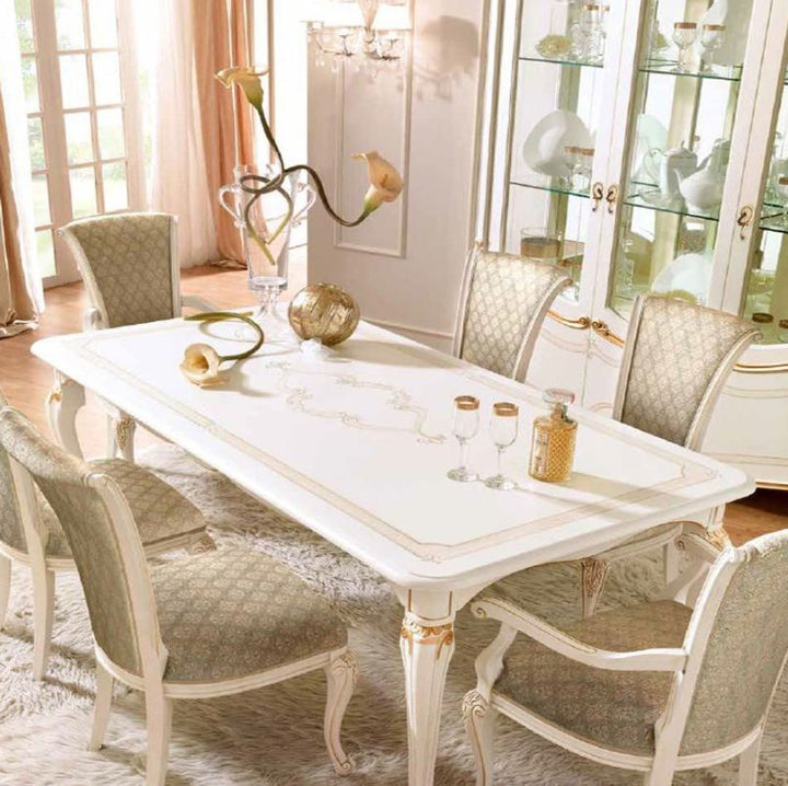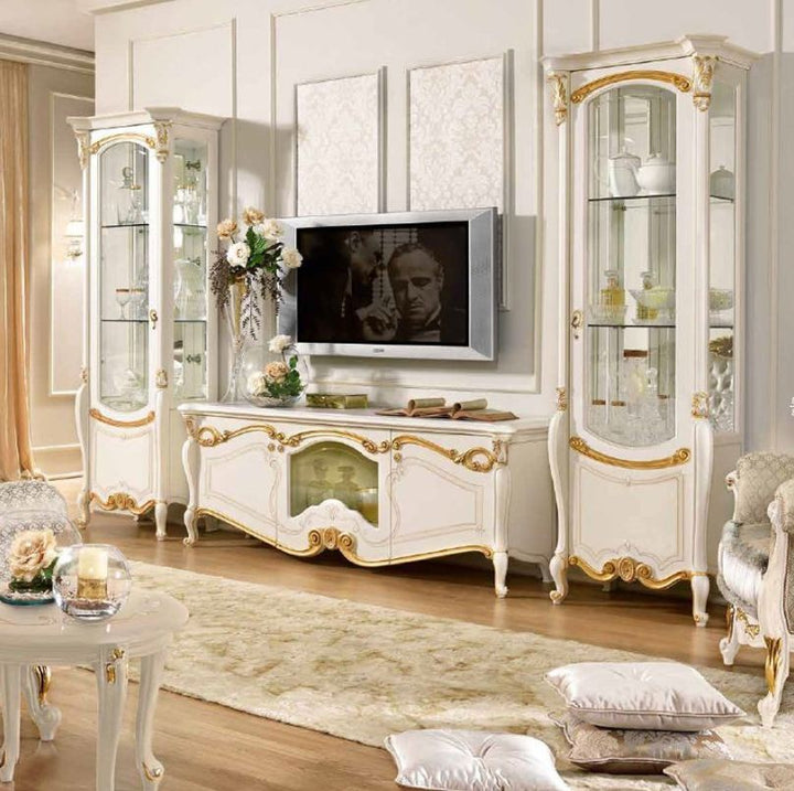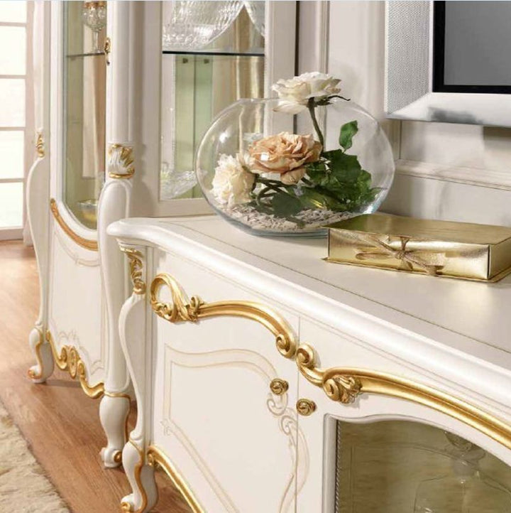The furniture is available in various colors, decoration and gilding is possible on request, or is offered in a subtle classic ivory white base color. It is also possible to have it made entirely in gold.