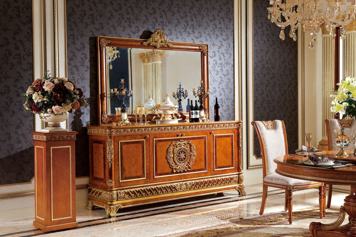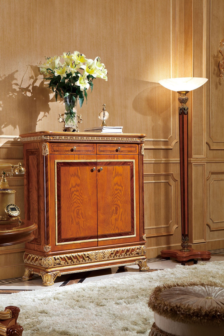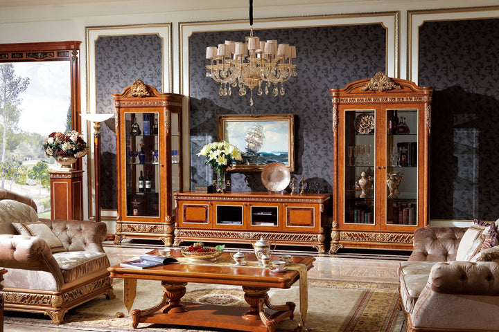 The Michelangelo walnut series was newly developed by us and has been manufactured exclusively for our customers since 2016. Benefit from our high-quality materials and the production in solid wood. The optional colors beige-gold and walnut-gold radiate warmth, comfort and luxury. The 24K gold-plated elements, as well as the hand-made inlays, give the series a breathtaking exclusivity. Thanks to our own production, we are able to offer much cheaper offers than other Italian suppliers of the same quality.