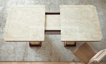 The tables in the collection are available in different sizes and offer flexible options for different occasions thanks to internal extensions and a sliding guide system.