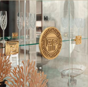 The display cabinet is the centerpiece of the living room, with sparkling crystals, a mirrored back and gold handles that create a play of light and shine.