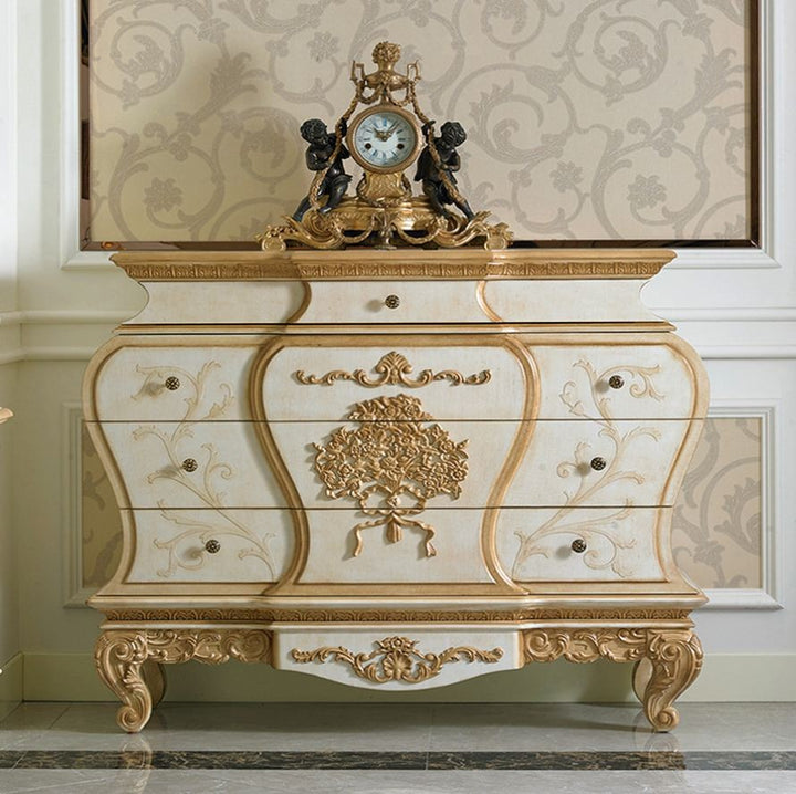 The Villa D' Este series is produced exclusively for Belle Arti. We had the best cabinet makers in Italy create the design, which is painstakingly made by hand. We have managed to offer this exclusive series at an astonishingly low price that would otherwise not be possible. The shapes are classic and adapt to all circumstances. Colors and decors were chosen discreetly. It is made exclusively of solid wood. Creating long-lasting luxury and lasting value were the main focus during development and production. Please let our employees create an individual offer for you at unbeatable prices.