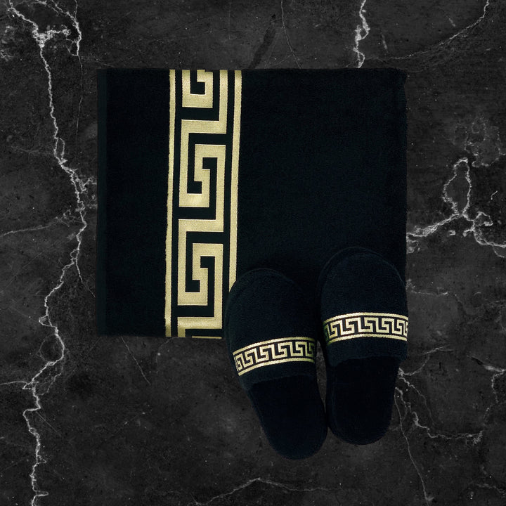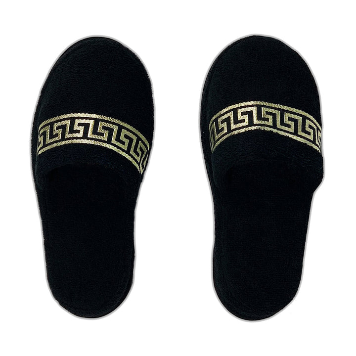 Exclusive hotel slippers black gold meander pattern - Unisex - 100% cotton