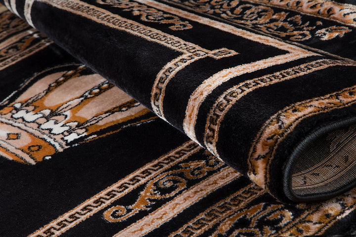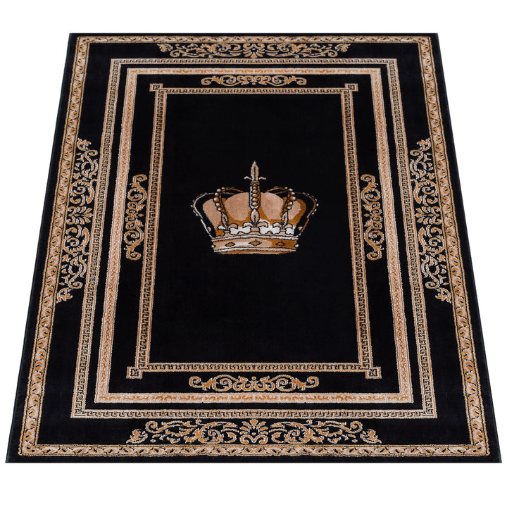 Living room carpet in black and gold with elegant crown motif in Italian design - non-slip & durable