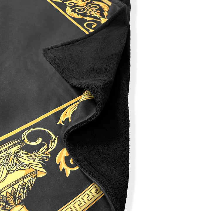 Exclusive Sherpa blanket with amphora motif in black gold - 150 x 200 - warm & cuddly soft