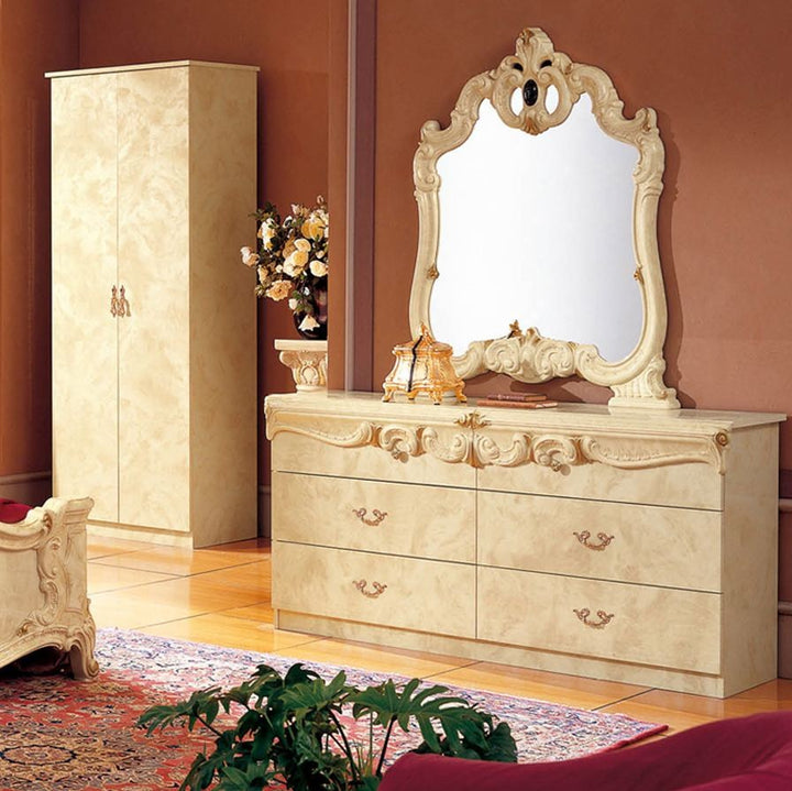 Double bed - 160x200 cm, Double bed - 200x200 cm, Wardrobe 6 doors, Wardrobe 4 doors, Chest of drawers with 6 drawers, Chest of drawers with 3 drawers, Dressing table, Mirror for dresser, Bedside table with 2 drawers, Pouff, Bedroom set complete, Slatted frame 160x200 cm, Slatted frame 200x200 cm |