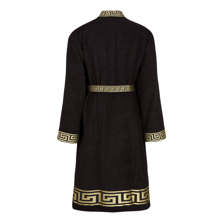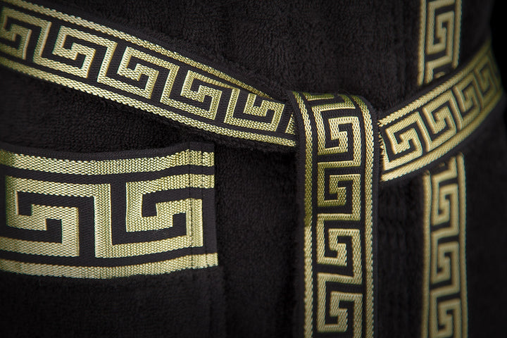 Luxury bathrobe kimono meander in black gold for women & men - 100% cotton