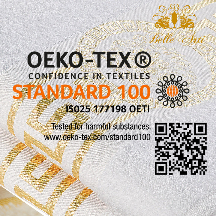 Design and material: Our bathrobe features a striking meander design reminiscent of antique elegance. Available in elegant black or pure white, this timeless pattern fits perfectly with every style and personality. Made from high-quality cotton, the bathrobe feels soft and comfortable on the skin, ideal for relaxing moments after bathing or showering.