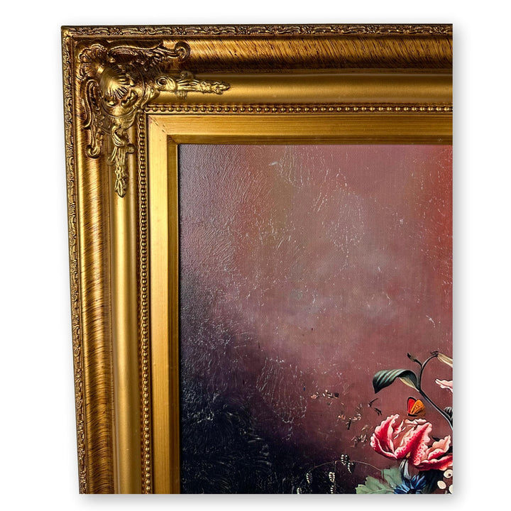 The painting is a print, but it was finally painted by hand with a brush. This gives it the impression of a real painting and is difficult to distinguish from one. The frames are made of real wood and have been gilded by hand.