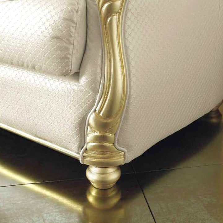 The Leonardo sofa set is a classic variant and adapts to all spaces. Excellent workmanship is guaranteed and high-quality materials are used. The high-gloss polyester varnish with a mahogany effect is the special feature of our Luxor collection. This application is properly applied by our Italian cabinet makers, six layers of varnish are applied manually, layer by layer. The final gilding is applied by hand.