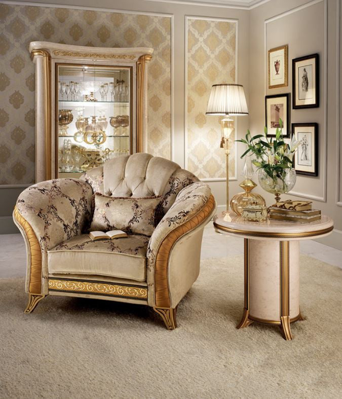 The sofa set, decorated with damask velvet fabrics, is available in the version with or without capitonnè.