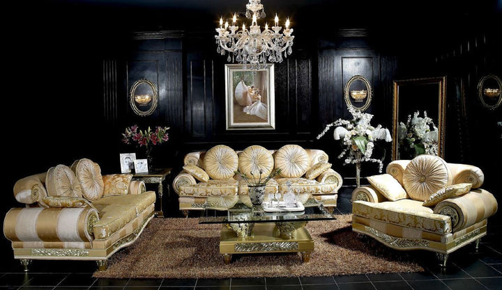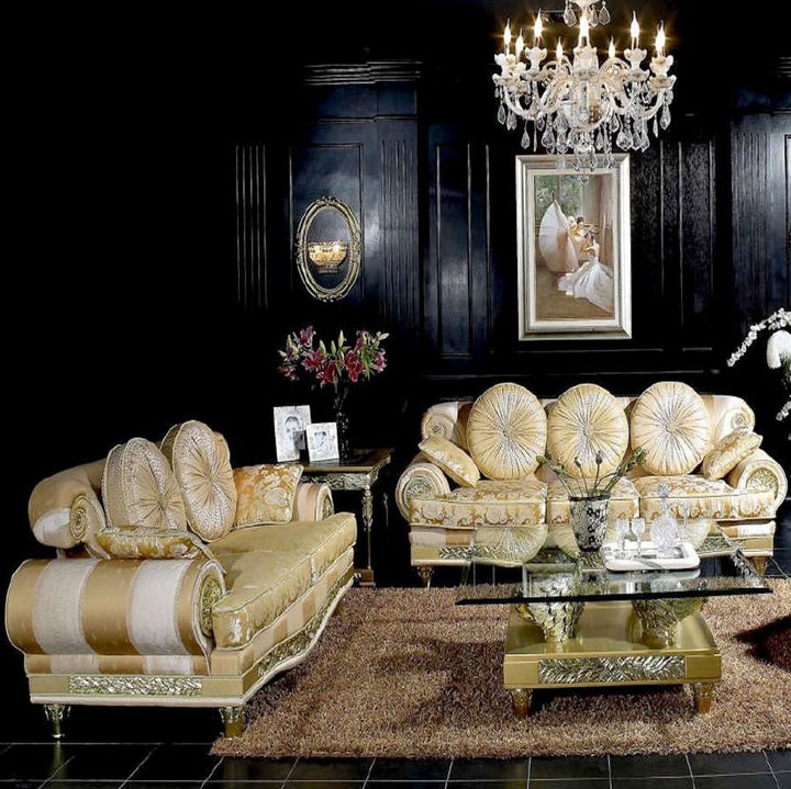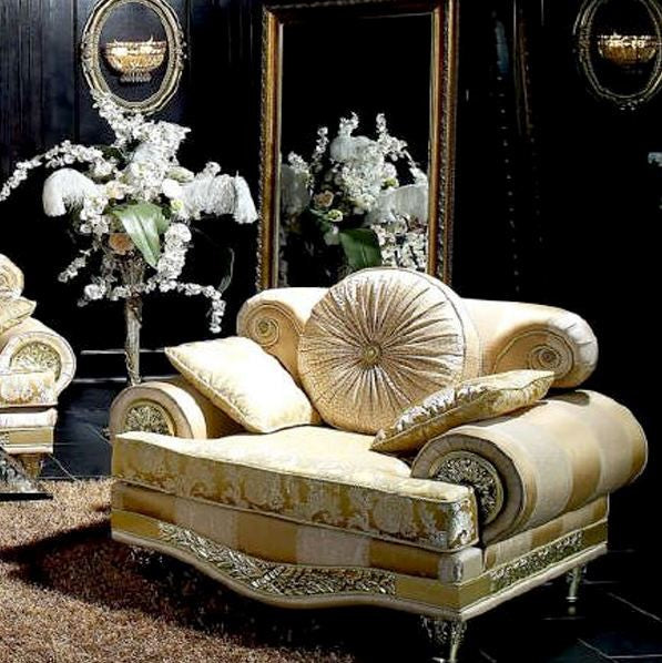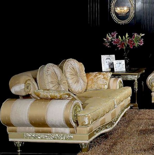 Timeless elegance in a classic Italian style characterizes this sofa set. An upgrade of your rooms is guaranteed, the first impression of your living room is guaranteed to be pure luxury. The "Milano Gold" set is without question one of the most beautiful sets ever developed.