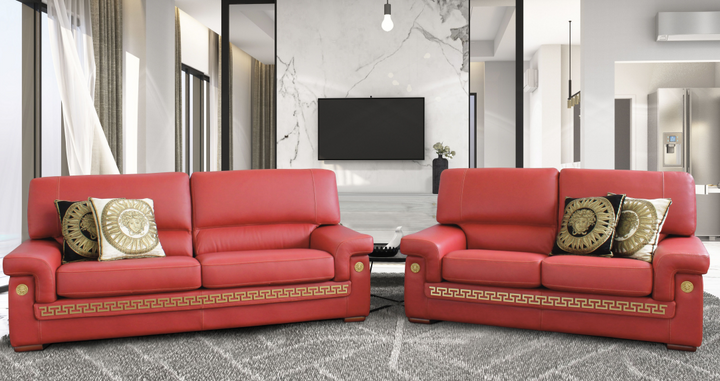 Zeus leather sofa set red