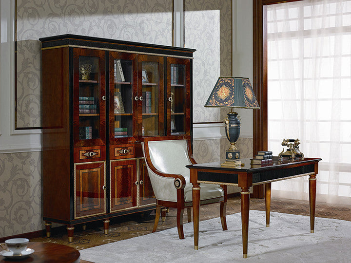 The Capri study is exclusive and still offers excellent value for money. The series is made entirely by hand, using only the finest solid woods and bronze fittings. The furniture is made of glossy walnut and accented with matt gold applications. The subtle shine looks exclusive and gives the furniture something special. A classic design with an exclusive look.