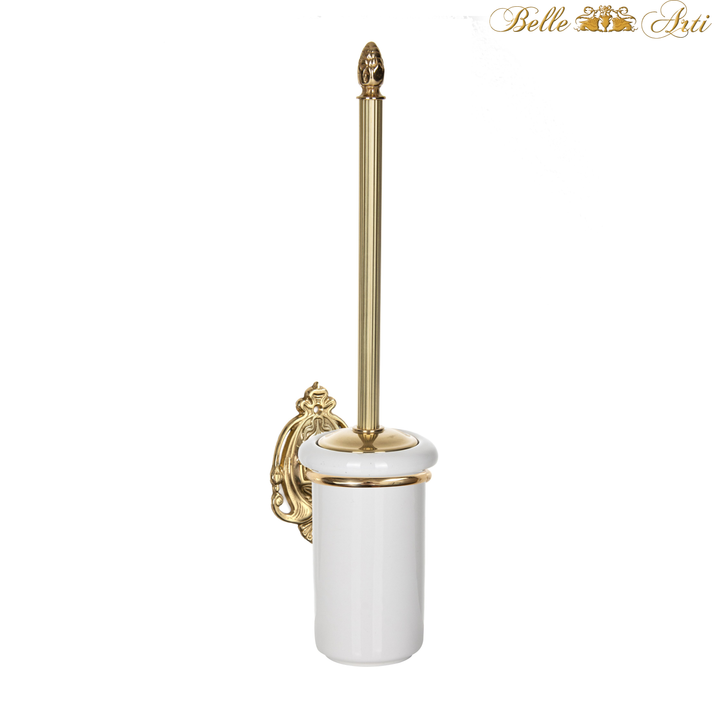 Toilet brush WC brush made of brass in antique retro look gold polished with ceramic holder - wall mounting